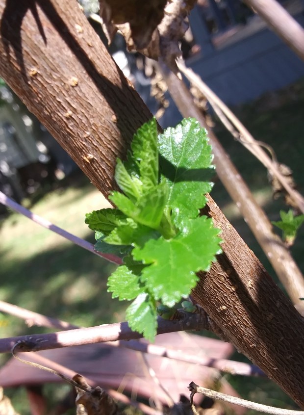 I found my first glimmer in the tiny green leaf tips that began to poke through some dead-looking branches on a mulberry tree in the back yard.