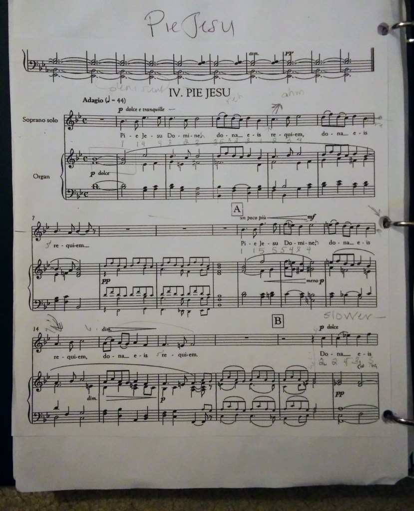 The words of the “Pie Jesu,” the fourth movement of Faure’s Requiem, are: