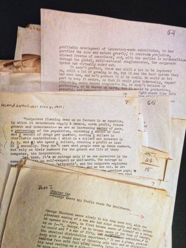 ( I have been more accurate in my intuitions of global-historical, international movements of the spirits on the earth– my [unpublished] “Great Dystopian Novel,” The Resistance, conceived in my freshman year of college as Anti-Nuke, and rough-drafted in 1990 as anti-nuke and Anti-Corporate Imperialist, is set on the streets outside, and the suites within, a city of “crystal towers” built following Eco-disasters [nuclear accidents and terrorist attacks], by The Corporation which runs the world and which manufactured drugs and pharmaceutical-grade petroleum products. When p.c.s became common, I projected “Town Halls” and live discussions at UN events at which every one with their own or public- use computers could participate in real time; I wrote volumes about the evils of nuclear weapons, armed and aimed and waiting around the globe, and the madness of Mutual Assured Destruction policies, and I have raged against budget cuts to programs of aid, of food and medicine and the welfare of the poor [the hungry five year olds who can’t get jobs], and I have not wanted to join the world in which human lives are merely ID- numbered digits plugged into percentage tables, logarithms, algorithms and statistics, or wedges of color on a pie chart, and “acceptable Losses” can be calculated in nuclear/fossil fuel/”Grub Hub” scenarios and acquisitions, world run with hypocrisy and schizophrenia and greed. Fearing and wanting to stay as much out of the mainstream “World” as possible is, I suspect, my main sin, and the root of most of my anxieties, failures, and shortfalls–